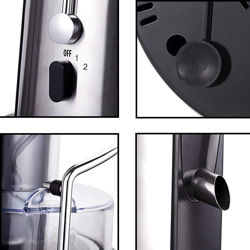 - Correa de alimentación extra grande de 3.0 in – un brazo de bloqueo de seguridad asegura que la funda se mantenga apretada mientras funciona. El sistema de protección contra sobrecarga apaga el exprimidor si el motor se sobrecalentaba desde una fuente de alimentación inestable, montaje incorrecto, funcionamiento inesperado, etc. Diseñado con una función antigoteo extra grande de 3 pulgadas que evita derrames.