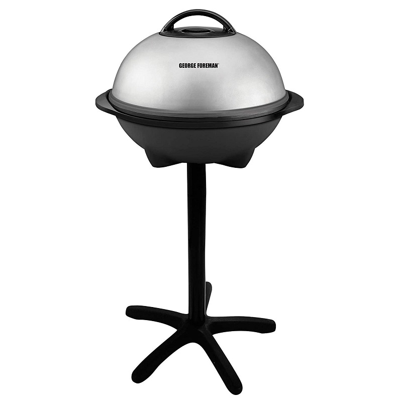 La parrilla eléctrica para interiores y exteriores George Foreman tiene espacio para más de 15 porciones de deliciosas carnes, verduras, kabobs, postres y mucho más. Además, puedes utilizar esta parrilla con la misma facilidad al aire libre que puedes usar en interiores. Esto es posible gracias al soporte de parrilla extraíble que es resistente en el patio y se puede quitar para la parrilla de encimera.