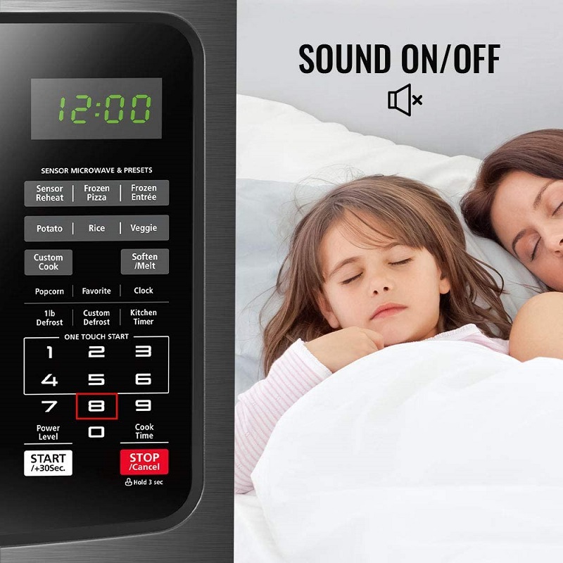 Este horno de microondas cuenta con función de sensor que elimina las conjeturas de la cocina. El sensor integrado detecta constantemente el nivel de humedad de los alimentos durante la cocción, luego ajusta automáticamente el tiempo y la temperatura para obtener resultados óptimos.